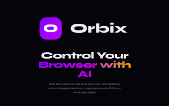 Orbix est une extension pour Chrome qui permet de contrôler le navigateur grâce à l'intelligence artificielle. En utilisant des commandes vocales ou textuelles, les utilisateurs peuvent ouvrir des sites, envoyer des messages via WhatsApp, remplir des formulaires et gérer les onglets. L'application prend en charge plus de 200 sites populaires, rendant la navigation sur le web plus efficace et intuitive.